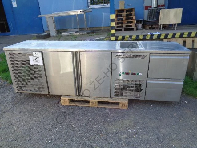 - Chladící stůl - nerez,dřez na nápoje,2x dvířka,2x zásuvka vpravo 2990x700x900