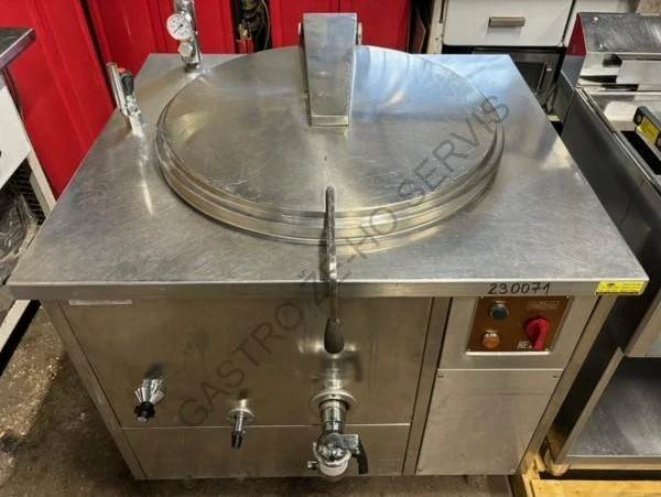 - model: KE 22 - objem: 150l - elektrický - kulatý duplikátor - napouštěcí baterie - přetlakový ventil - vypouštěcí kohout - napětí: 380V - příkon: 34kW - rozměr: (š x h x v) 1000x900x900 mm