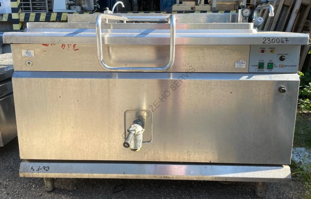 FOTO před dílenskou prohlídkou - model: KG - 300 - plynový - nerez - objem: 300 l - dvouplášťový - nepřímý ohřev - hranatý duplikátor - automatické dopouštění vody do duplikátoru - bezpečnostní systém, který přeruší ohřev v případě, že v duplikátoru není voda - přetlakový bezpečnostní ventil včetně manometru - vypouštěcí kohout s velkou kapacitou - vyvážené sklápěcí víko - napouštěcí kohout pro studenou vodu - vnitřní rozměr: 1100x670x450 mm - napětí: 230 V - tepelný příkon: 32 kW - rozměr (š x h x v): 1400x900x900 mm Varné kotle jsou důležitou součástí gastronomických provozů. Rozdělujeme je podle média na elektrické, plynové a parní. Podle tvaru varné nádoby a litráže jsou kotle rozděleny na : 1. Varné kotle s kulatým duplikátorem 85 , 100, 150 litrů 2. Varné kotle s hranatým duplikátorem 100, 150, 200, 300 litrů - plynový kotel s hranatým duplikátorem - automatické dopouštění vody do duplikátoru - bezpečnostní systém, který přeruší ohřev v případě, že v duplikátoru není voda - přetlakový bezpečnostní ventil včetně manometru - vypouštěcí kohout s velkou kapacitou - vyvážené sklápěcí víko - napouštěcí kohout pro studenou vodu Plynový kotel Gastro-Haal KG 300 Katalogové číslo: KG 300 Výrobce: Gastrohaal Rozměry 1400x900x900 mm Rozměry nádoby 1100x670x450 mm Objem kotle 300 l Parametry 32 kW/ 230 V/ 50 Hz