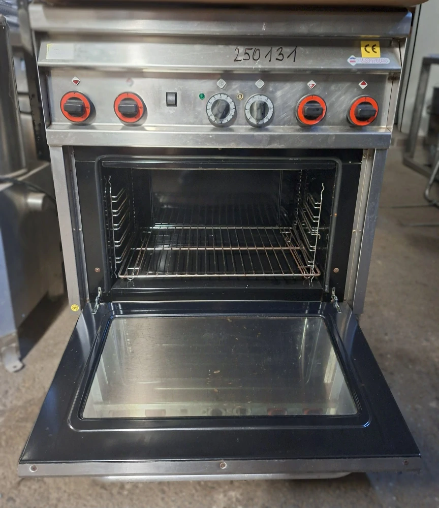 celonerezové provedení;4x hořák - 2x hořák 3,5kW, 2x hořák 5,5kW;elektrická trouba s grilem;elektrické zapalování;nerezové dveře;rozměr trouby v cm: 59x39x36 - pro GN 1/1;dodáno v provedení ZP + trysky PB;napětí 230 V/50Hz;